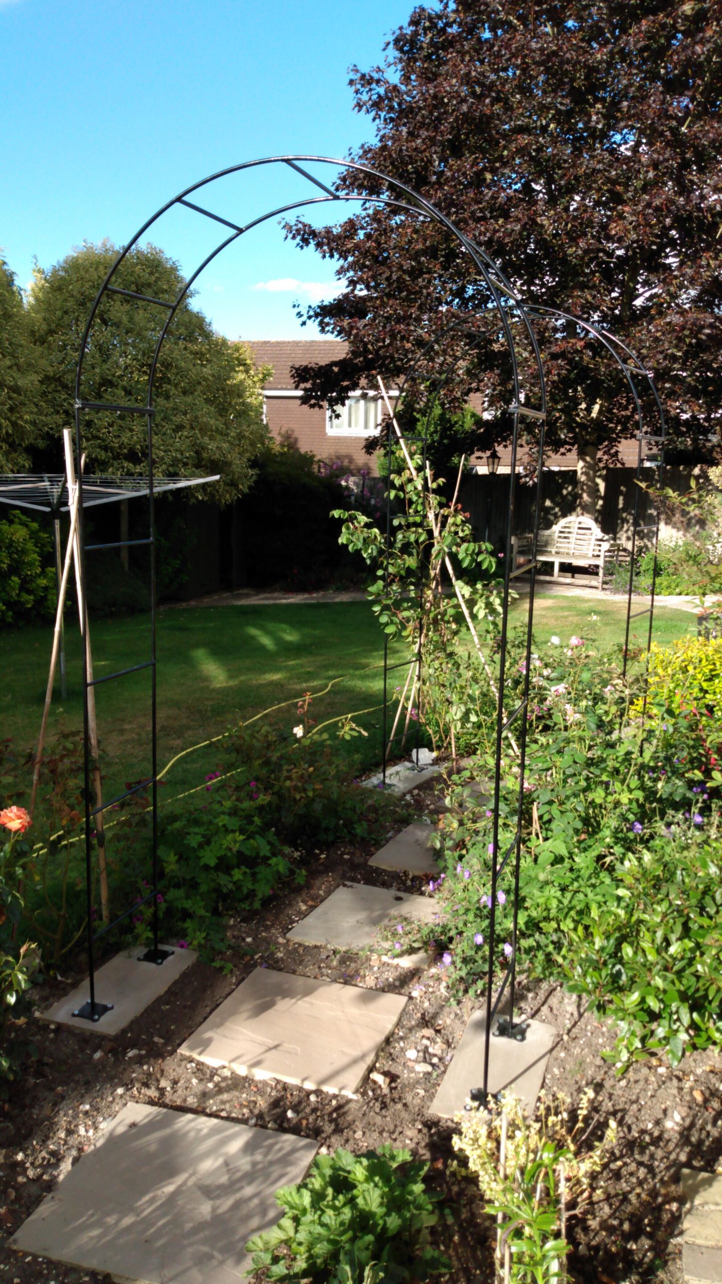 This high quality metal garden rose arch is a perfect frame for roses and other climbing plants. The arch is made of solid 12 mm round steel and is strong and sturdy so will not collapse under the weight of plants. It is possible to make the garden rose arch to any size to suit your space. Please contact us to discuss your design requirements and for a guideline price.