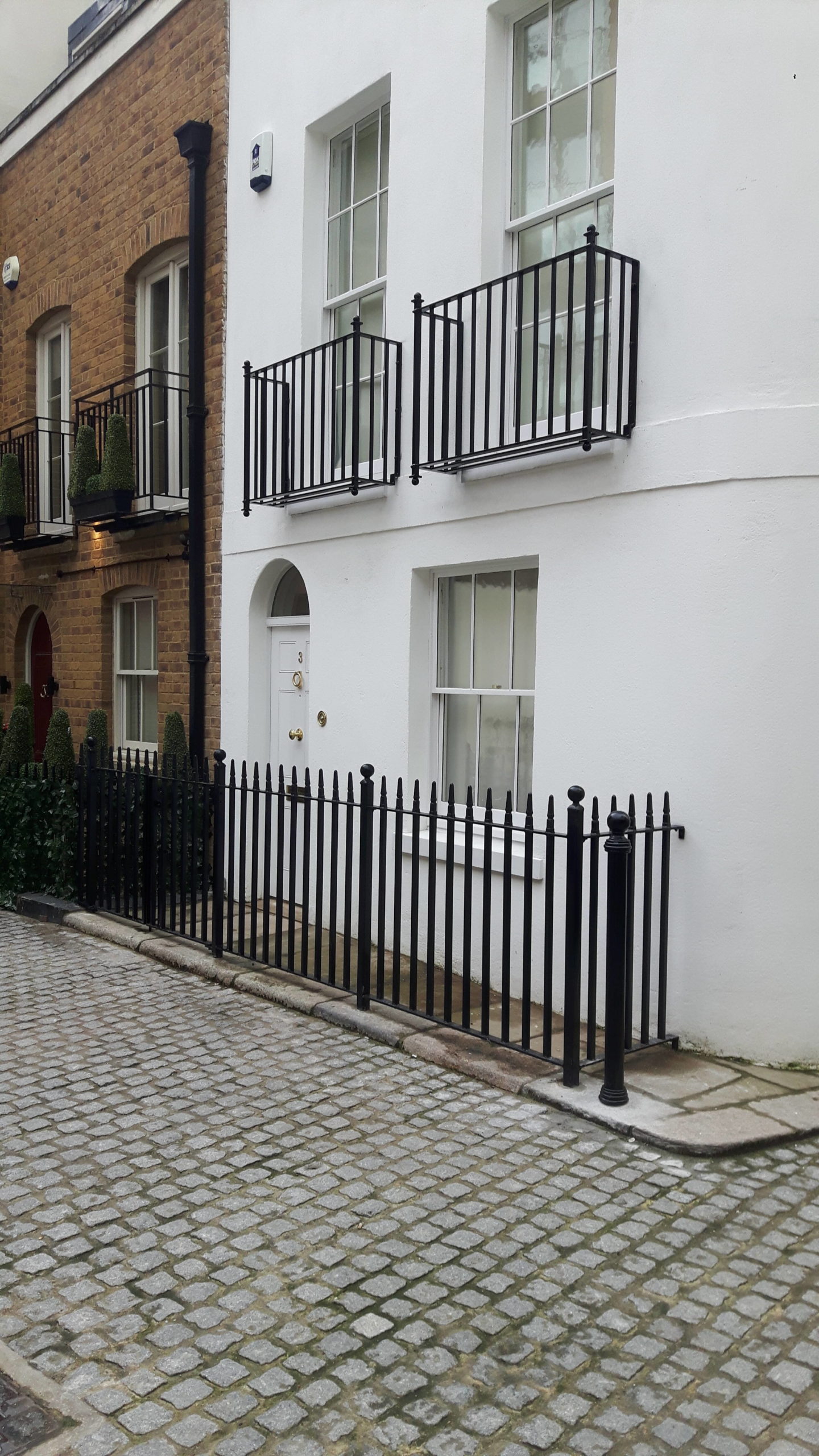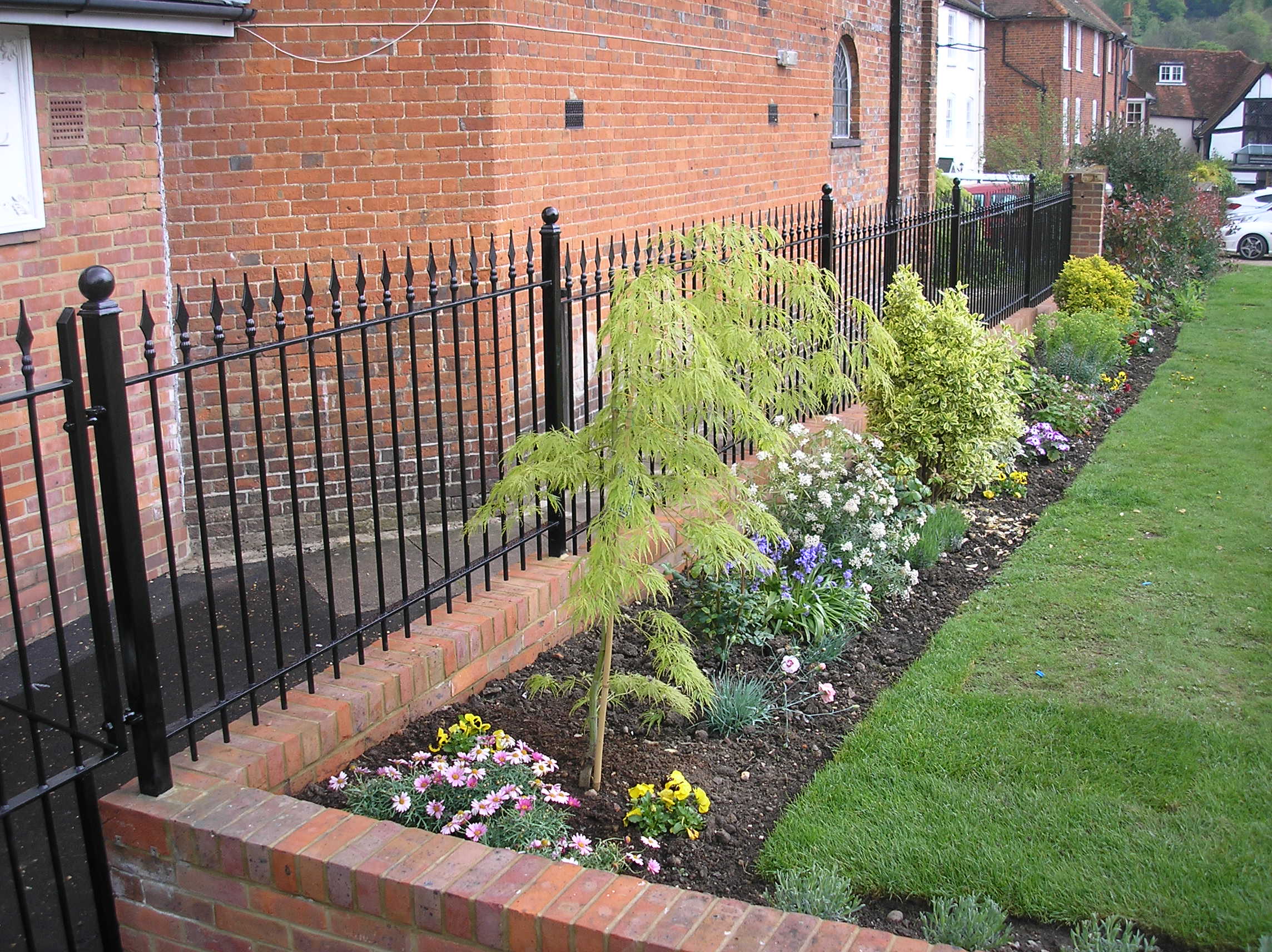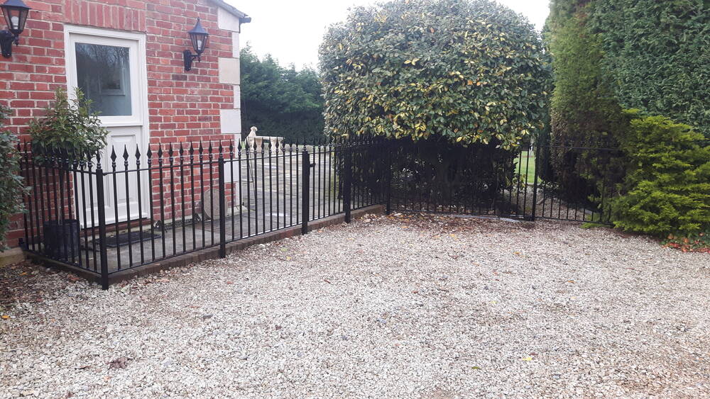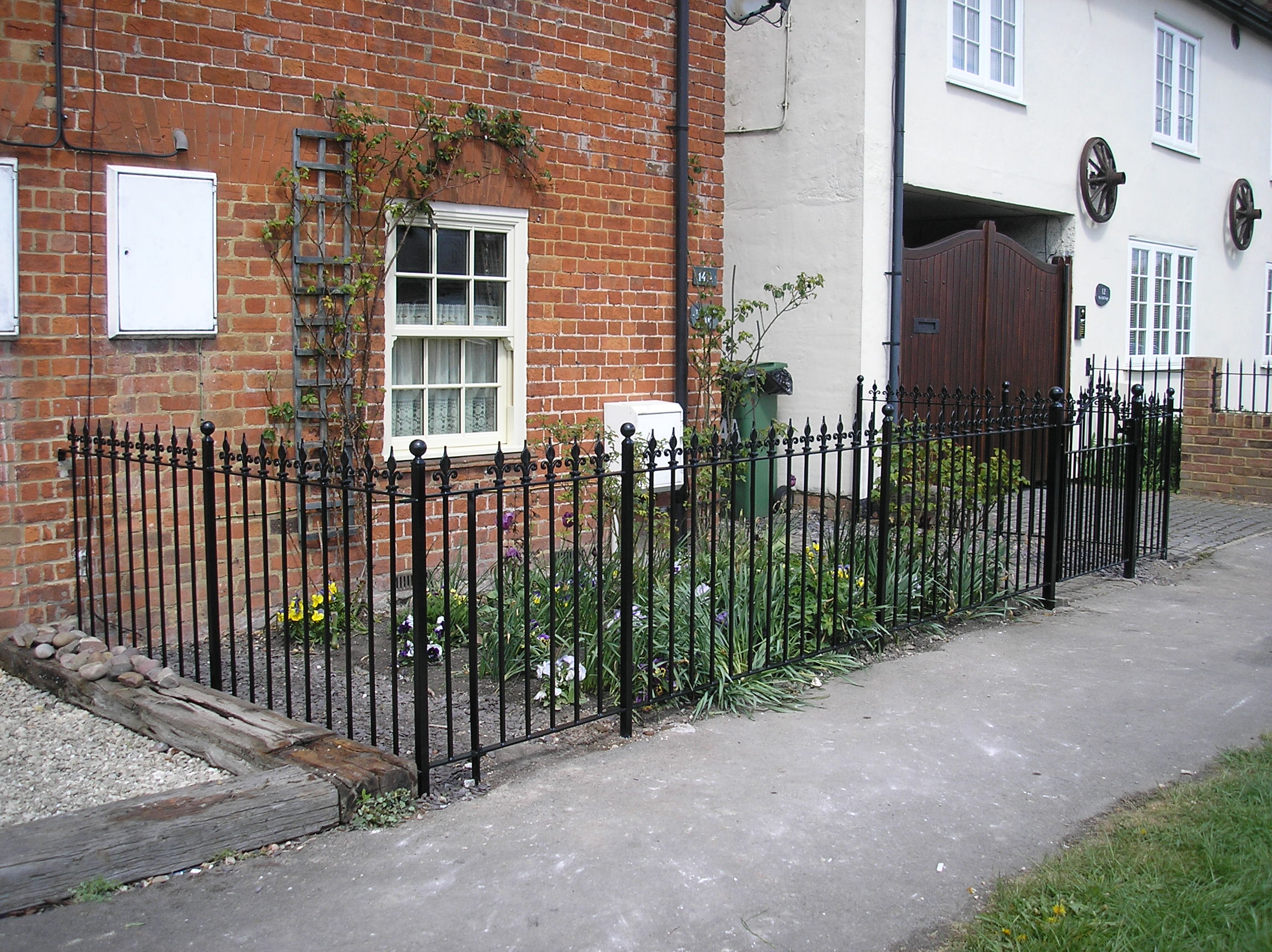 These charming, wrought iron railings with finials work well with a huge range of properties and are our bestseller. The design can be customised with round or square uprights, any RAL colour powder coating and your choice of finials from our extensive range. Matching gates are also available.