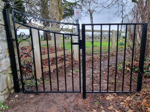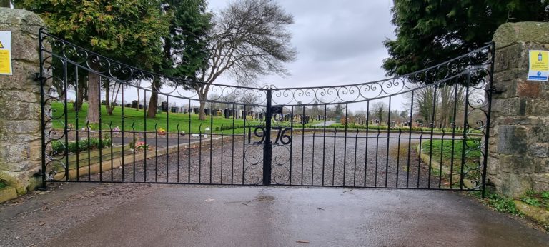 We removed the gates shot blasted of the many layers of paint, removed and replaced the badly rusted areas and  remade the lock and drop bolts. The gates where then galvanised and powder coated before being rehung. The gates can now be used once again.